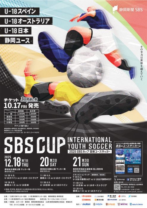 ユース年代の国際大会「SBSカップ」を12月に開催 今年はスペイン・豪州と対戦、10月17日チケット発売