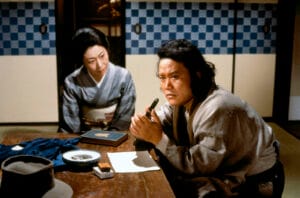 もう一つのタイプは初代・金田一耕助俳優の片岡千惠蔵が登場した1947年から、高倉健主演の「悪魔の手毬唄」(1961年)に至る、現代的なスーツ姿の金田一。千惠蔵や高倉健の東映作品以外でも、この間に作られた映画では、金田一耕助はスーツ姿で現れる。このことは最初に演じた片岡千惠蔵のイメージが、いかに強かったかがよくわかる。今回の特集は、石坂浩二スタイルを踏襲した西田敏行の金田一が登場する「悪魔が来りて笛を吹く」(1979年)を除いて、こちらのタイプの金田一映画だ。