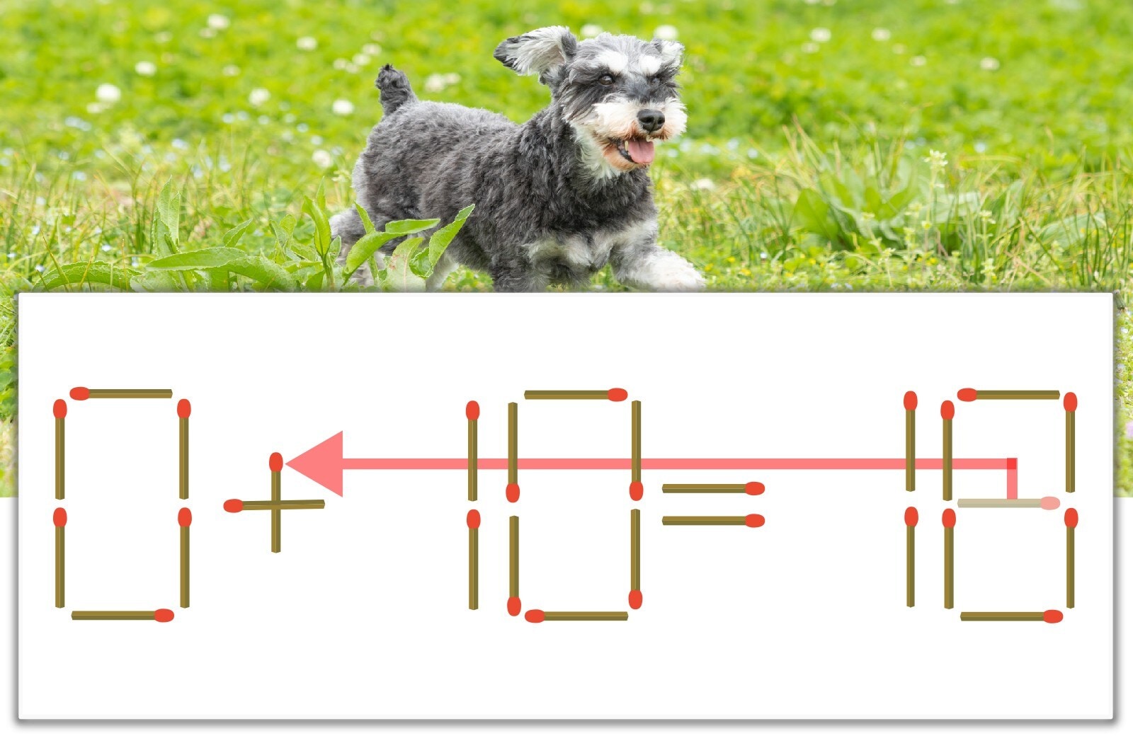 「8」を別の数字に変化させると答えが導き出せます。「8」のマッチ棒を1本移動して、「-」を「+」にしてみましょう。すると、「0+10=10」が成立します。