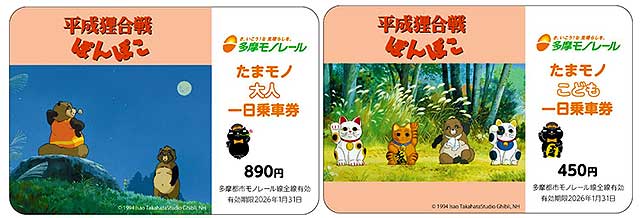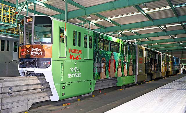映画「平成狸合戦ぽんぽこ」の舞台は多摩丘陵、多摩モノレールは立川を中心に北は上北台(東京都東大和市)、南は高幡不動(日野市)・多摩センター(多摩市)など多摩エリアを結ぶモノレールってことで、コラボ。