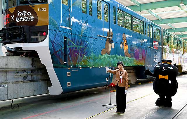 多摩モノレール「平成狸合戦ぽんぽこ」ラッピング車両に乗って東京30市町村の魅力を体感♪小池百合子都知事 出発合図 30秒動画もワクドキ!2050東京戦略