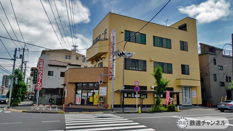 聞いた通り、店の前には買いに来たお客さんが数人待っていました。しばらく入店できなかったので道を渡って全体を撮影。待っていたお客さんがお店に入ったので撮影しました。右のビル部分に工場があります。