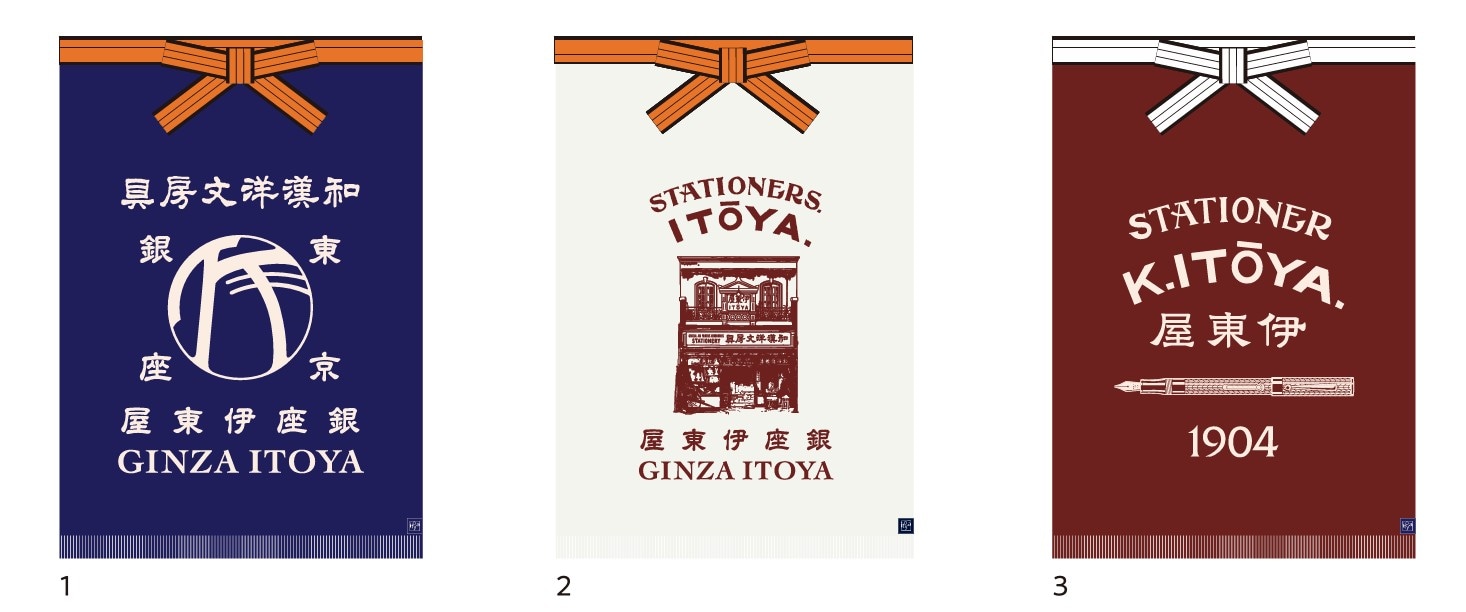前掛けの産地・愛知県豊橋市で約100年前に作られた昔ながらの「シャトル織機」を使い丁寧に織られた前掛けは、丈夫でやわらかな風合いが魅力。伊東屋オリジナルデザインの前掛けやトートバッグのほか、銀座の老舗7店のロゴやモチーフをあしらった前掛けも登場する。