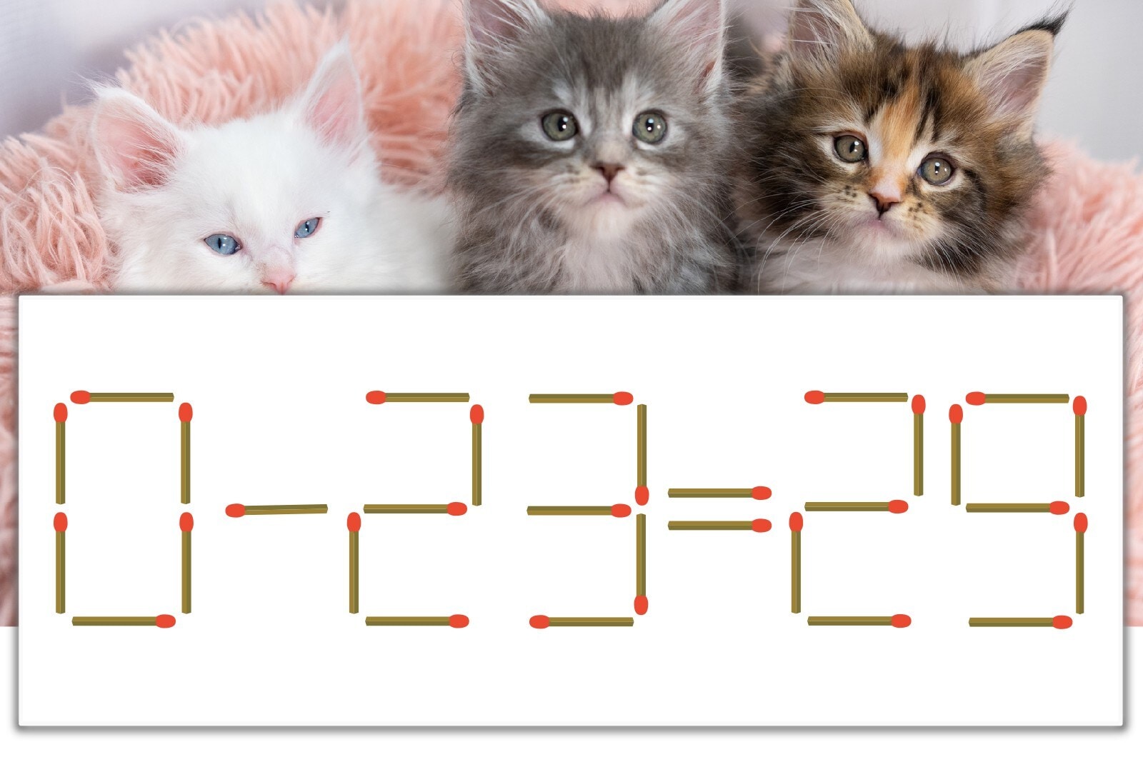 「9」を別の数字に変化させると答えが導き出せます。「9」のマッチ棒を1本移動して、「-」を「+」にしてみましょう。すると、「0+23=23」が成立します。