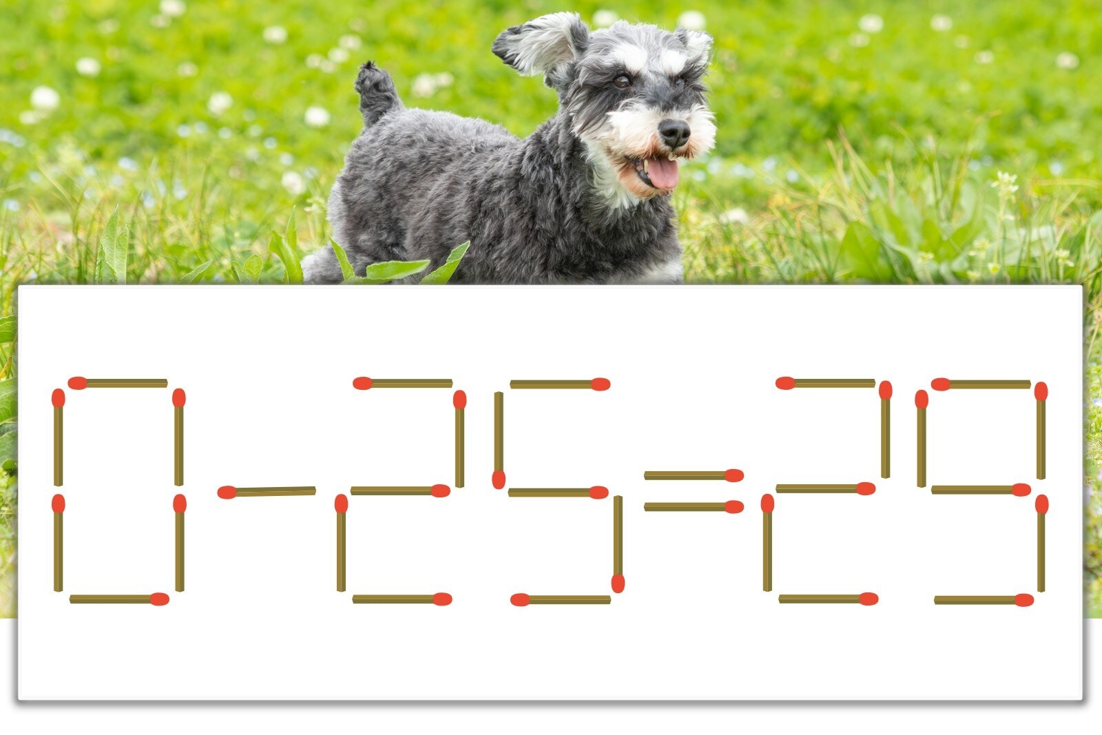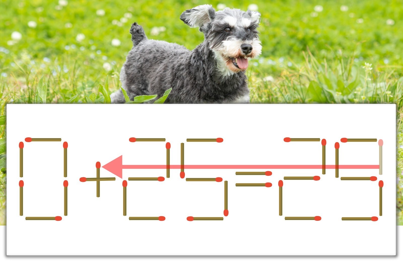 「9」を別の数字に変化させると答えが導き出せます。「9」のマッチ棒を1本移動して、「-」を「+」にしてみましょう。すると、「0+25=25」が成立します。
