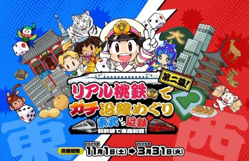 関東・関西をまたにかける「リアル」すごろく再び――東武鉄道と近畿日本鉄道が、大人気ゲーム「桃太郎電鉄」とコラボしたリアルイベントの第2弾『リアル桃鉄でガチ沿線めぐり 東武 vs 近鉄 新幹線で東西制覇!』を2025年11月1日(土)から共同開催します。