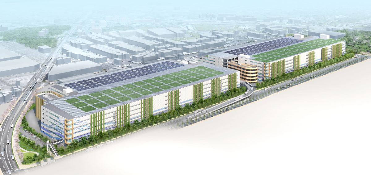 旧上瀬谷通信施設に設けられる物流地区には、三菱地所・東急不動産・シーアールイーの3社が、自動運転トラックなどに対応した「次世代基幹物流施設」の建設を行う事を2025年8月に発表しています。敷地面積が約220,000㎡、延床面積約700,000㎡(約211,750坪、東棟・西棟合計)にもなる巨大な施設です。