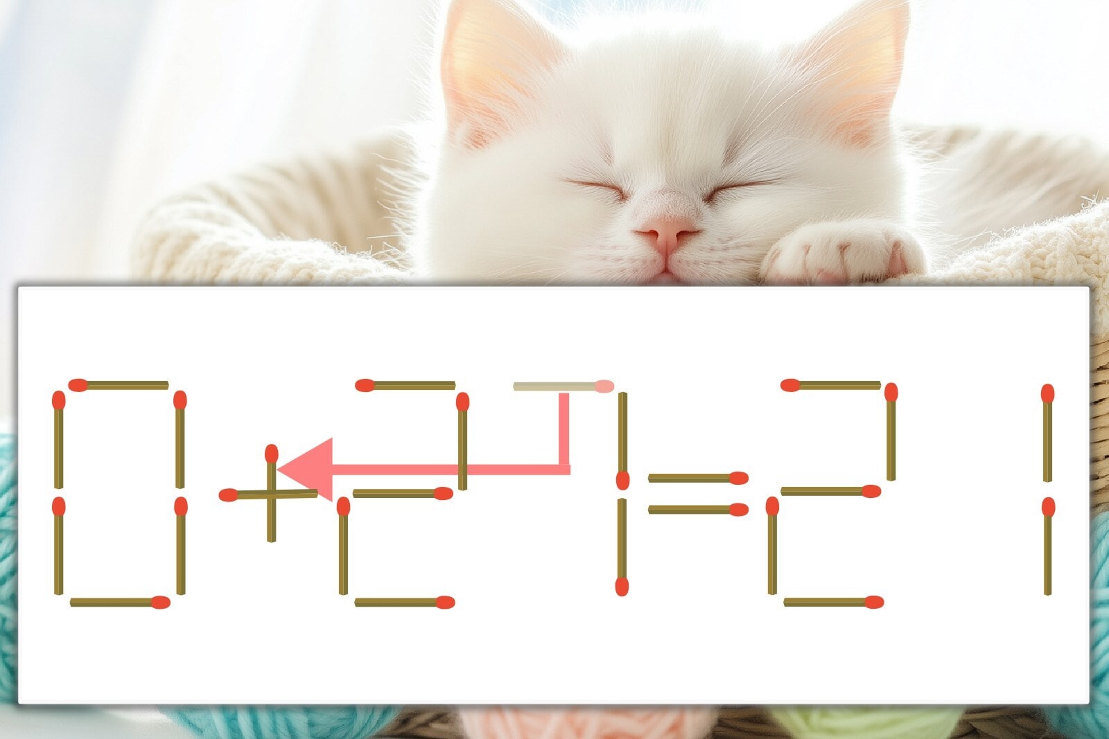 「7」を別の数字に変化させると答えが導き出せます。「7」のマッチ棒を1本移動して、「-」を「+」にしてみましょう。すると、「0+21=21」が成立します。