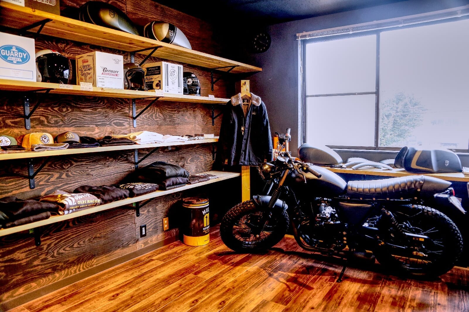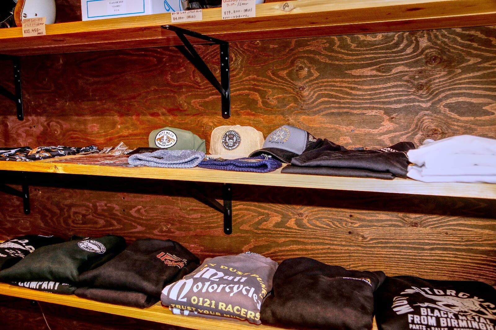 MUTT新潟は、単にバイクを販売・整備するだけでなく、顧客のバイクライフ全体を提案することを信条としている。2階にはアパレルも豊富に揃え、バイクに乗れない日にふらりと立ち寄る常連も多い。ブランドロゴを主張しすぎないデザインで、普段使いしやすい点が人気を集めている。