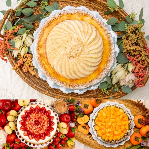 香りと味わいの高い洋梨、ほど良い酸味のリンゴ、みずみずしい柿を組み合わせ、濃厚なチョコレートと合わせた全3種類を用意。それぞれの果実が持つ旬のおいしさとチョコレートの豊かなコクが絶妙に溶け合い、秋ならではの味わいを届ける。