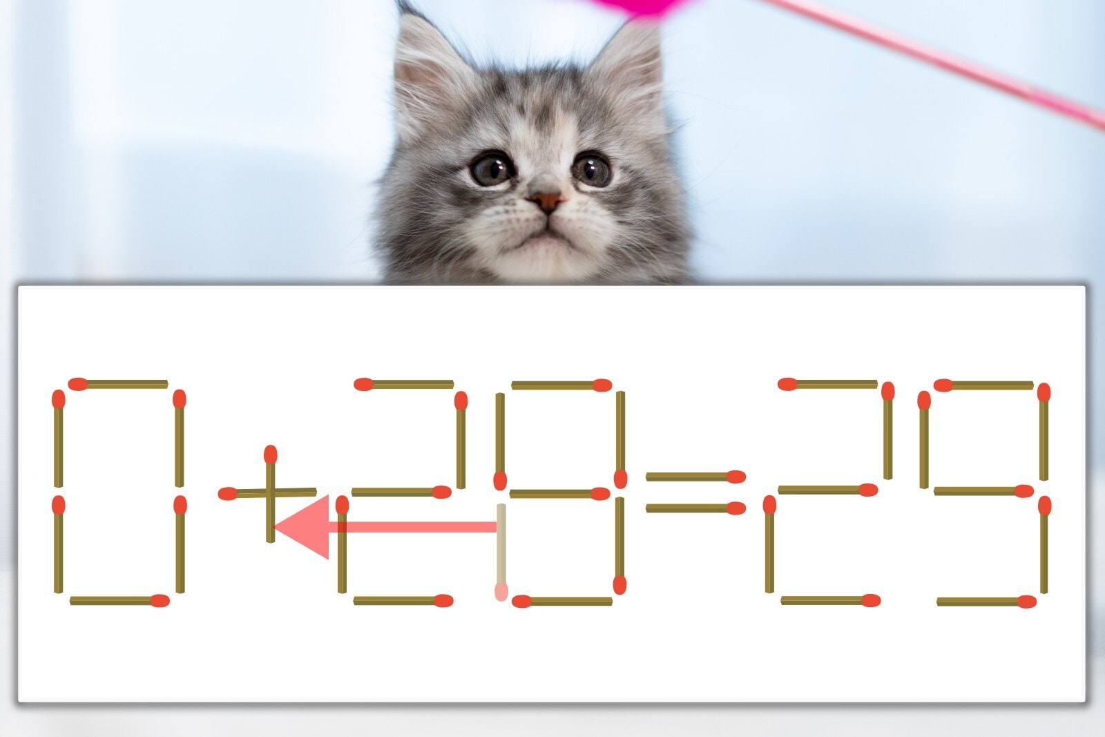 「8」を別の数字に変化させると答えが導き出せます。「8」のマッチ棒を1本移動して、「-」を「+」にしてみましょう。すると、「0+29=29」が成立します。