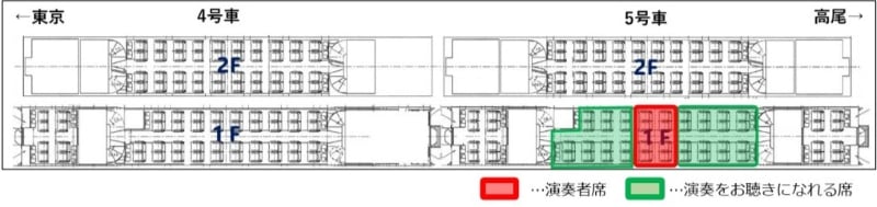 演奏場所は、中央線快速グリーン車の5号車・1階となります。