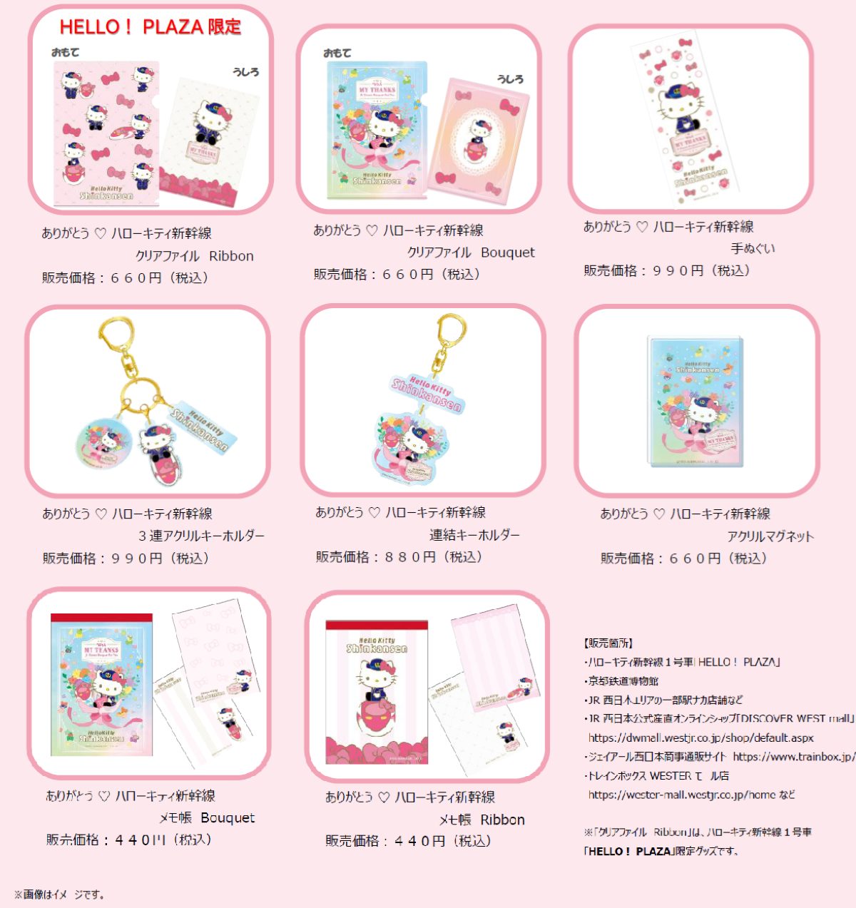 運行終了を記念し、「ありがとう♡ ハローキティ新幹線」のメッセージが込められたオリジナルグッズが、2025年11月1日(土)より順次発売されます。