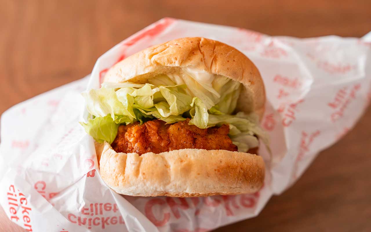 「チキンフィレバーガー」は、11種類のハーブ&スパイスで味付けしたジューシーなチキンフィレと、オリーブオイル入りのマヨソース、フレッシュなレタスの組み合わせ。