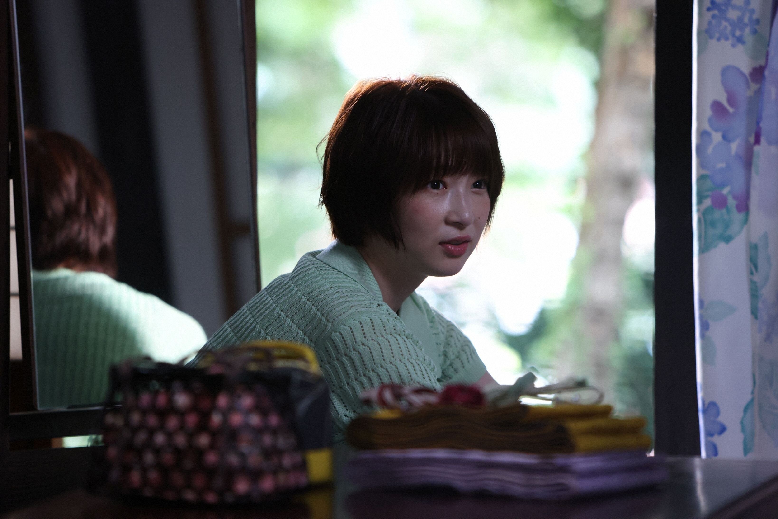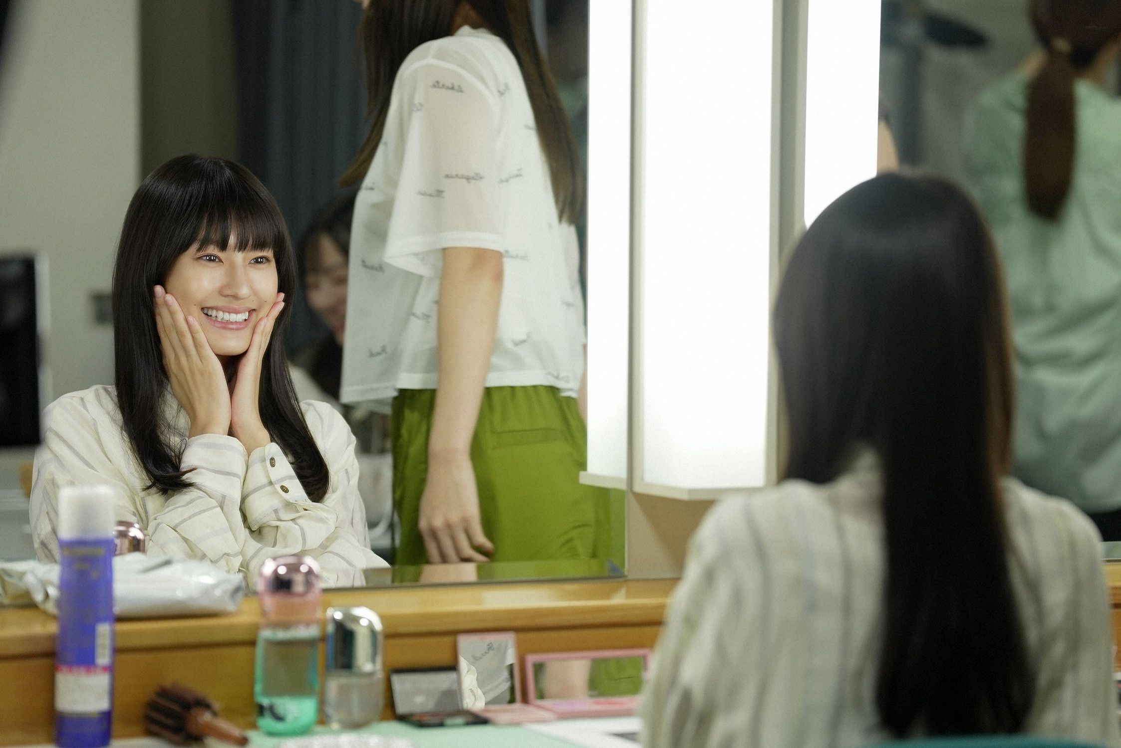 (C)「ひと夏の共犯者」製作委員会笑顔の練習をするアイドル活動中の澪(恒松祐里)