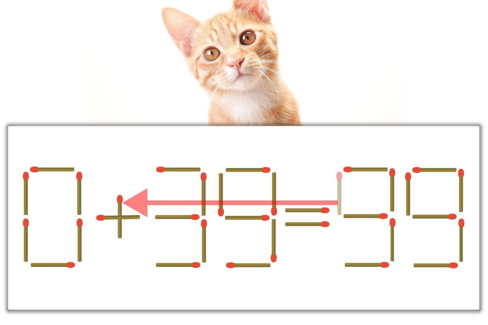 「9」を別の数字に変化させると答えが導き出せます。解答の十の位の「9」のマッチ棒を1本移動して、「-」を「+」にしてみましょう。すると、「0+39=39」が成立します。