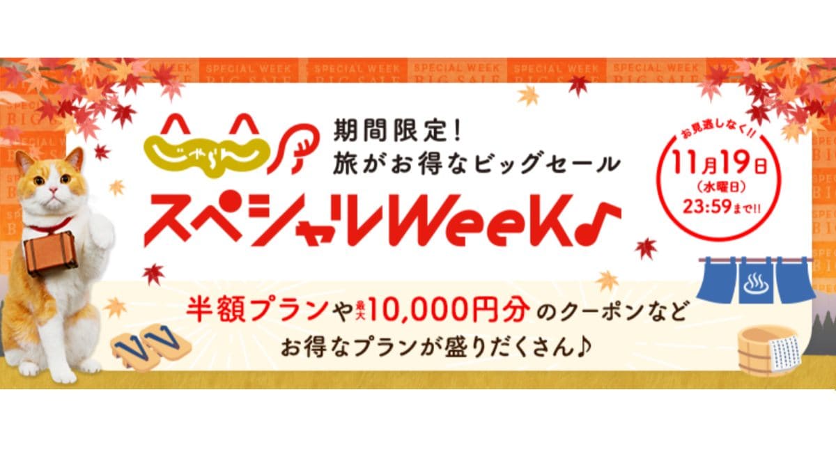 「じゃらんスペシャルウィーク」は、旅行を非常にお得に予約できるキャンペーンです。2025年秋のキャンペーンでは、毎回好評の「じゃらんスペシャルウィーク」限定の半額プランが登場します。