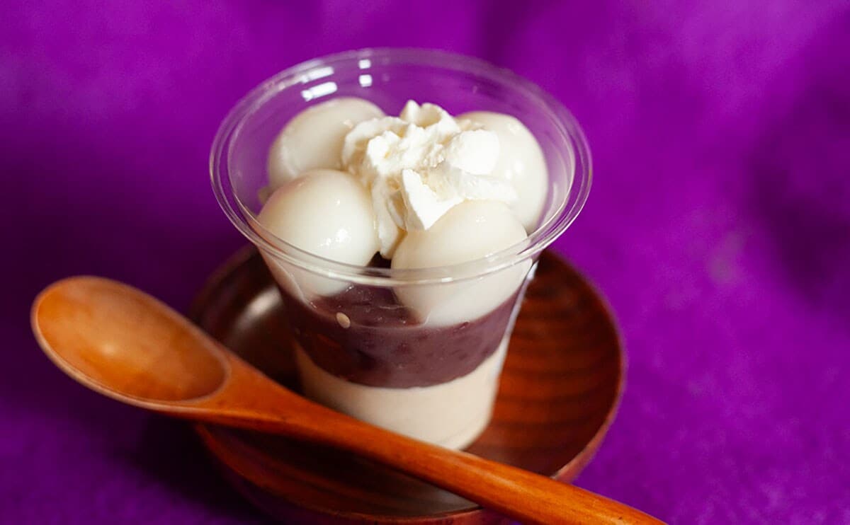 メインとなるきなこムースは、ほのかにきなこの風味を感じますが、甘さは控えめ。上品な甘さと、つるんといけちゃう軽い食感が特長でしょうか。一方、粒あんはねっとりしていて、豆の味が濃く、甘みもしっかりしています。きなこムースがつるつるだからか、豆感(食感)が際立ちますね。片方は甘くて、もう片方は甘すぎない。バランスもよく取れています。また、トッピングのおいしさも負けていません。ホイップクリームは濃厚でコクがあり、白玉のもちもちもナイスアクセントです!