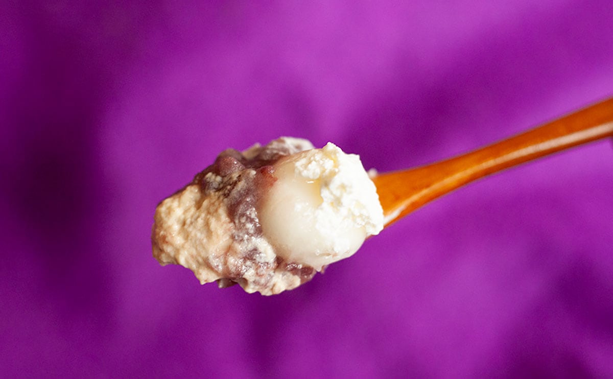 横から見ると、どんなつくりになっているかがわかりやすいですね。きなこムースと粒あんがバイカラーのようになっているのも◎。