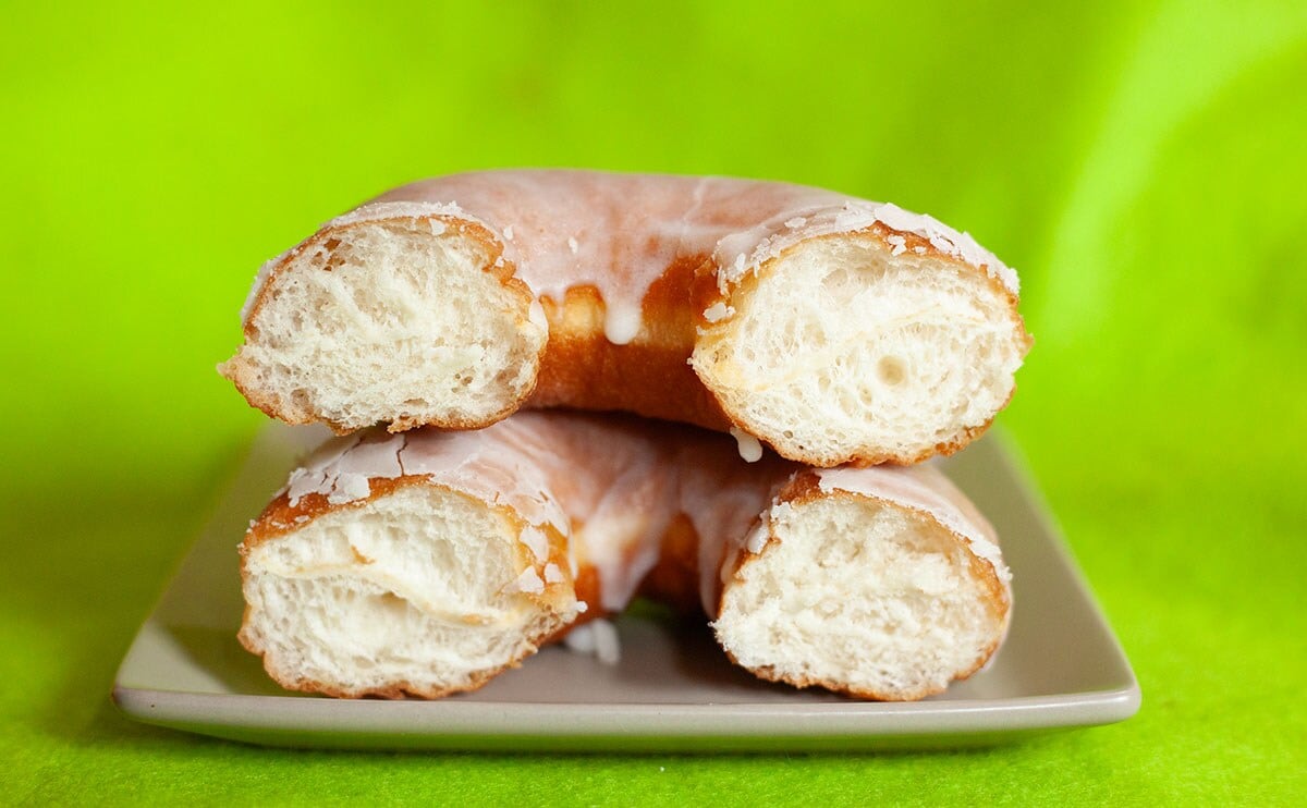 先ほども説明した通り、グレーズをかけただけのシンプルなドーナツです。念のため半分に切ってみましたが、中には何も入っていませんでした。