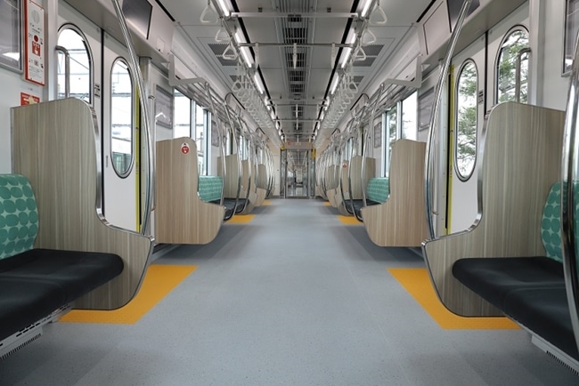 東西線車両は2014~2015年に製作された2000系電車。4両一編成で、車体長は先頭車16.75メートル、中間車16.5メートルと、南北線より一回り小ぶりです。仙台市内の高校生によるワークショップを開催するなど、市民の意見を反映させました。