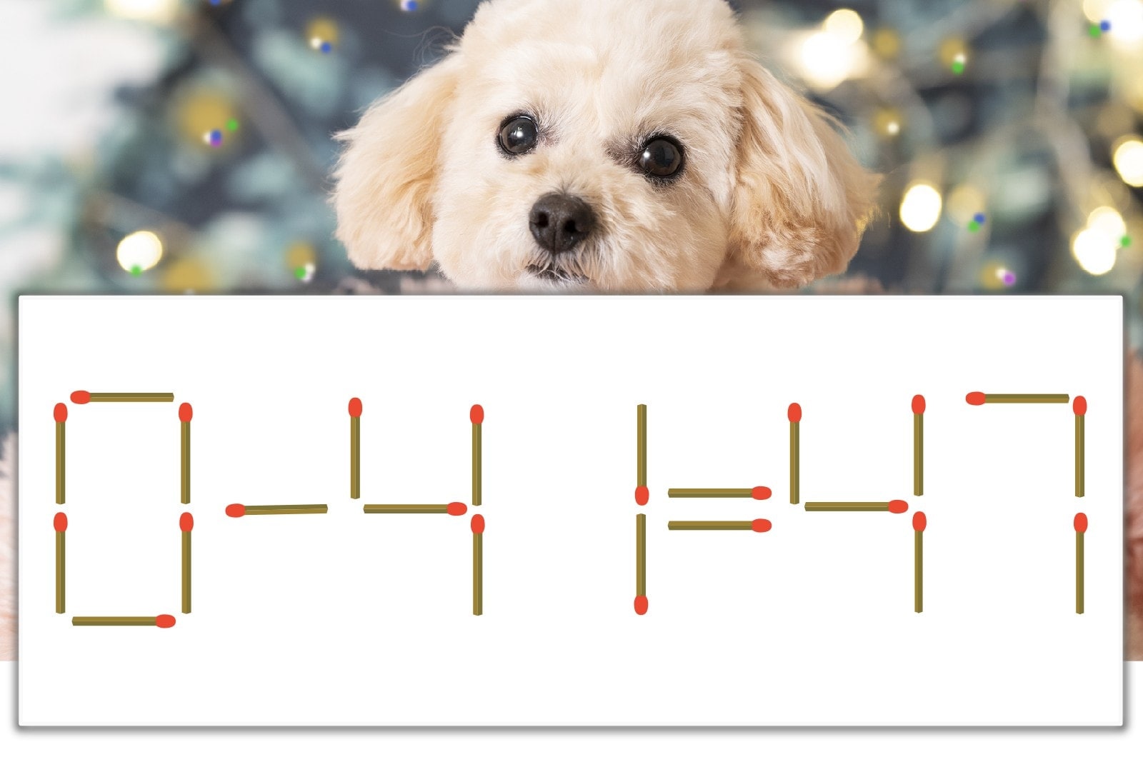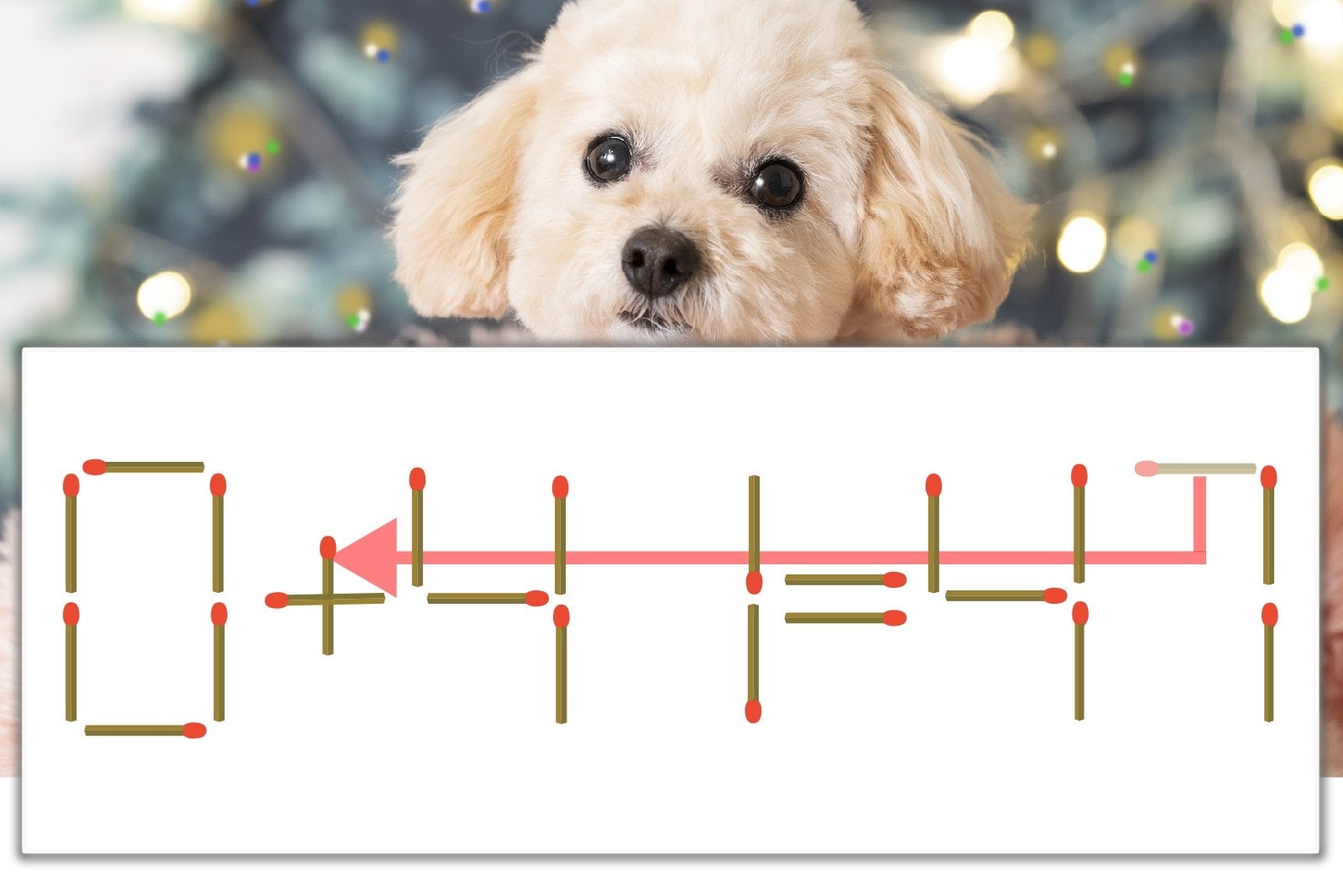 「7」を別の数字に変化させると答えが導き出せます。「7」のマッチ棒を1本移動して、「-」を「+」にしてみましょう。すると、「0+41=41」が成立します。