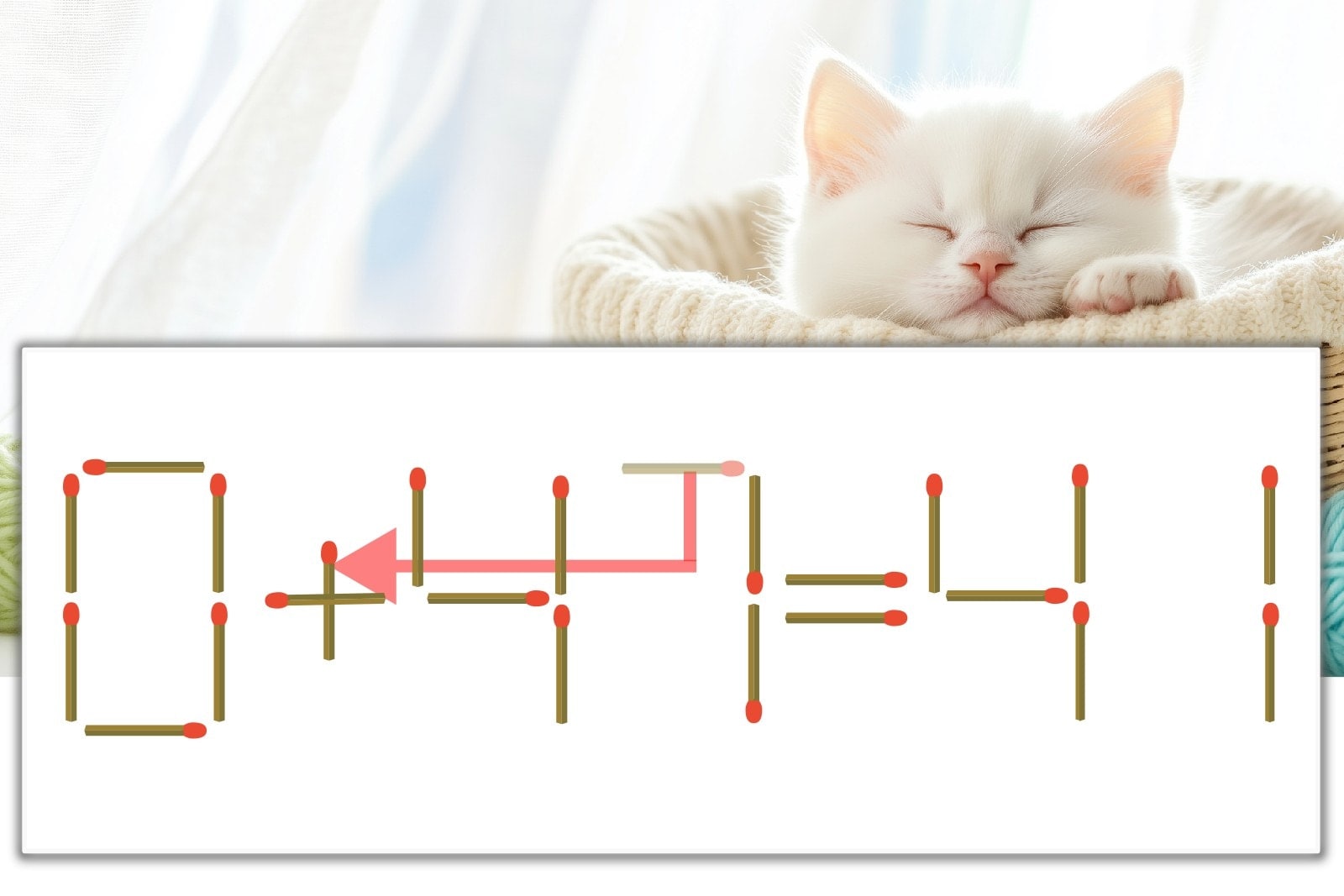 「7」を別の数字に変化させると答えが導き出せます。「7」のマッチ棒を1本移動して、「-」を「+」にしてみましょう。すると、「0+41=41」が成立します。