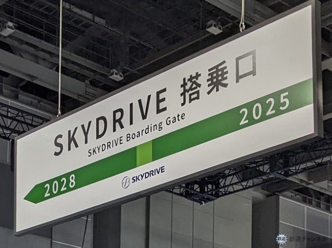 スカイドライブには鉄道業界が期待。JR東日本のほか、JR九州、近鉄グループホールディングス、Osaka Metro(大阪メトロ)の各社と資本提携。ブースにも提携各社のフライトメニューが並ぶ