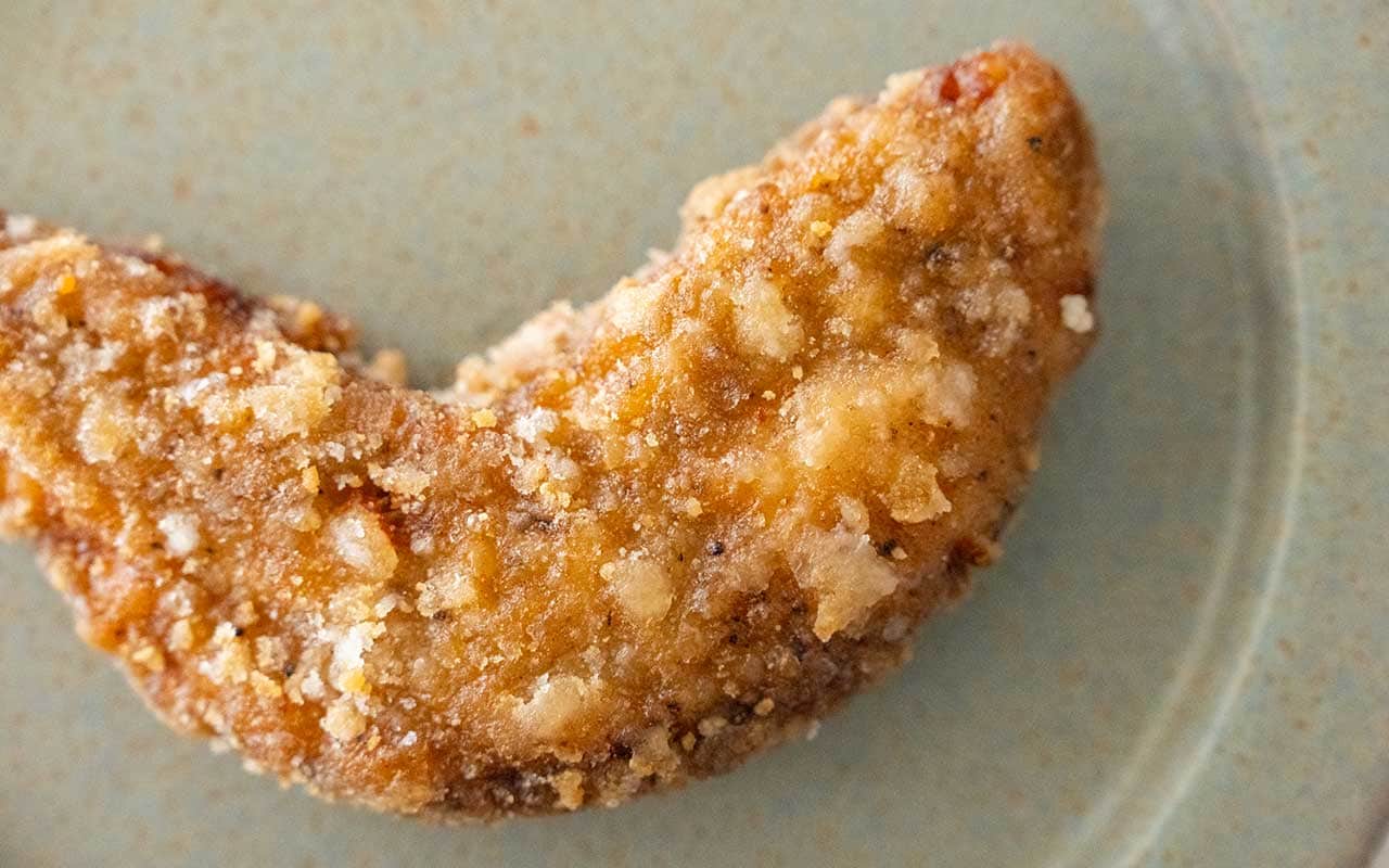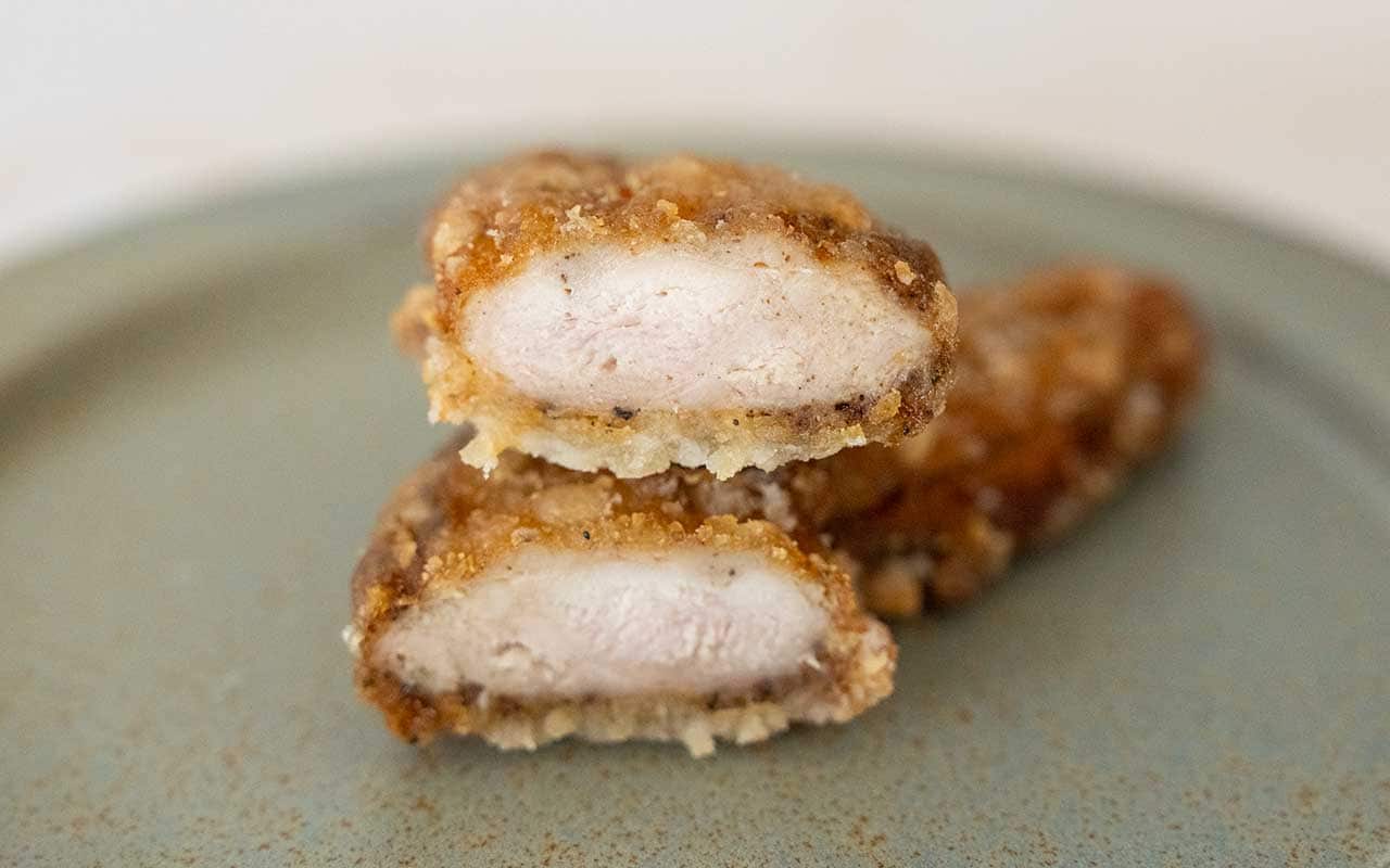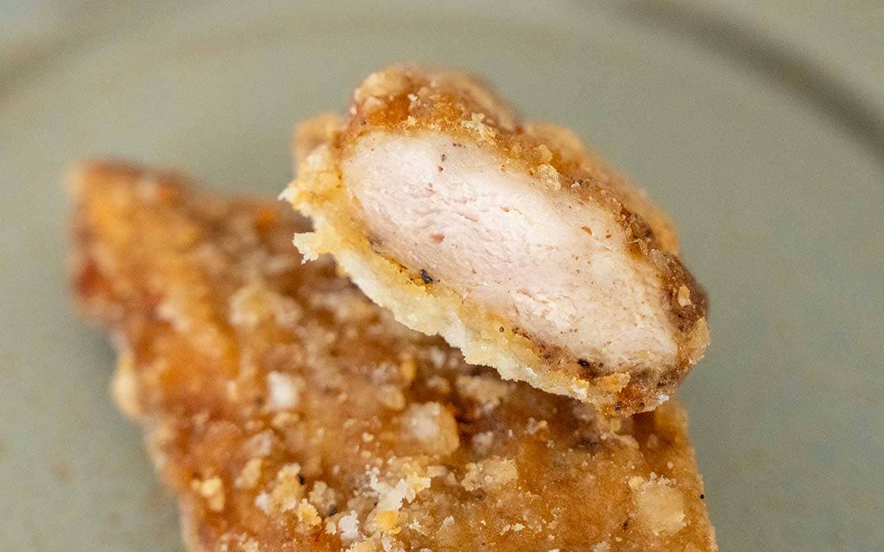 衣はさっくりとした歯ざわりで、チキンはしっとりと柔らかい食感に。一口食べただけでも、コショウのキリッと爽やかな風味が口の中いっぱいに広がります。あっさりとした旨みのチキンと、パンチのきいたコショウの味わいが絶妙にマッチして本当においしい!