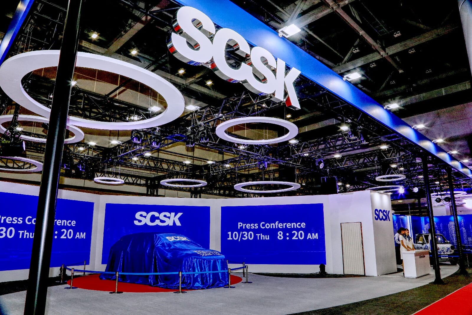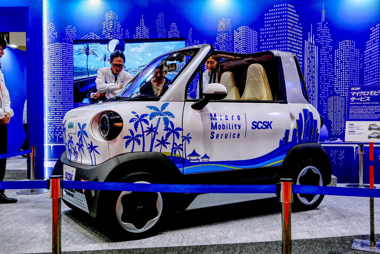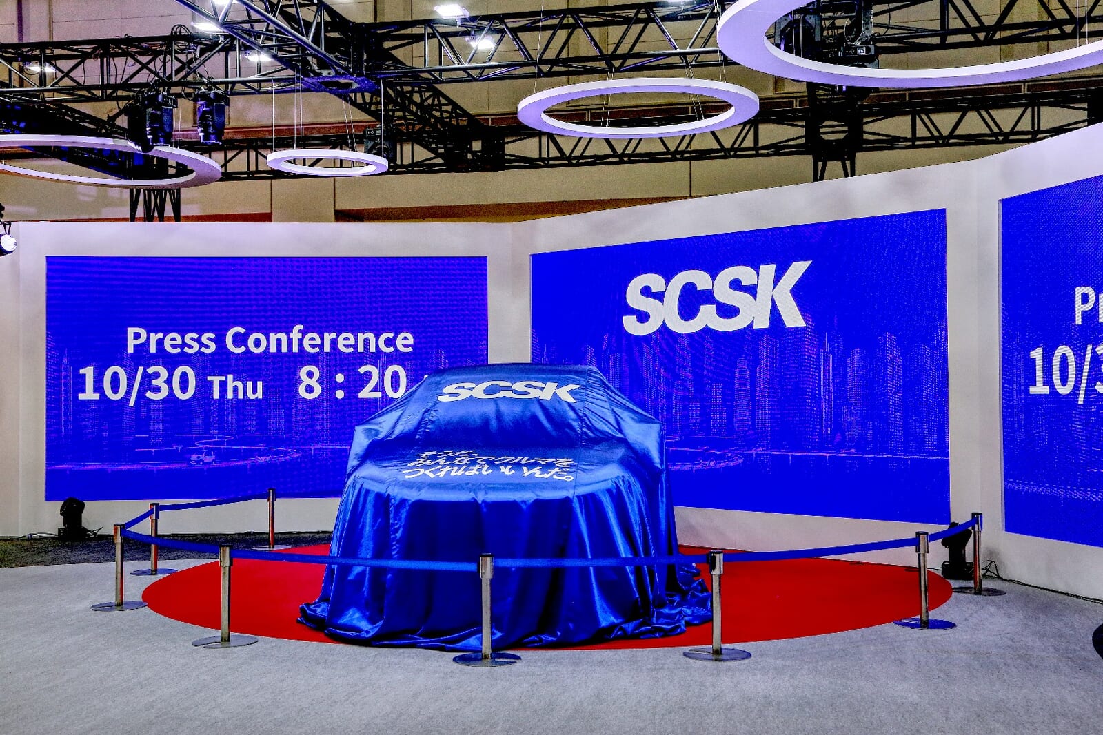 SCSKがEVコンセプトカーを初公開。ソフトウェアを核に、業界の垣根を越えた「共創」で実現する未来のモビリティ社会をJMSで提案した。