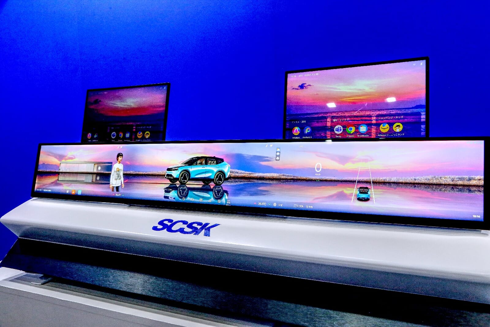 SCSKが特に注力したのが、SDV(Software Defined Vehicle)の中核をなすコックピット技術だ。運転席には、ダッシュボード全面に広がるピラー・トゥ・ピラーの44.6インチ8Kディスプレイを搭載。この巨大な平面ディスプレイは、運転時にはメーターやナビゲーションを表示する一方、停車時には全画面でゲームや動画などのエンターテイメントを楽しむことができ、まさに移動するパーソナル空間を実現する。後部座席にも個別のディスプレイが備えられ、乗員それぞれが好きなアプリケーションを利用可能だ。