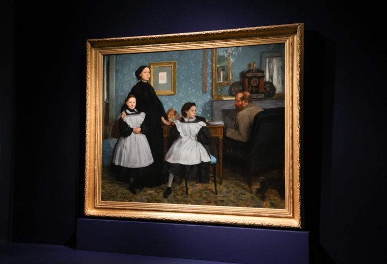 会場には、今回日本初公開となる初期のドガの傑作「家族の肖像(ベレッリ家)」のほか、ルノワールの「ピアノを弾く少女たち」などの名作が展示されている。また、戸外の風景や外光を室内に取り入れた作品、室内を装飾するために制作された作品などが並び、「室内」をテーマに印象派の「もうひとつの魅力」を堪能できる構成になっている。扉や壁紙など、「室内」を意識できる展示空間にも注目だ。
