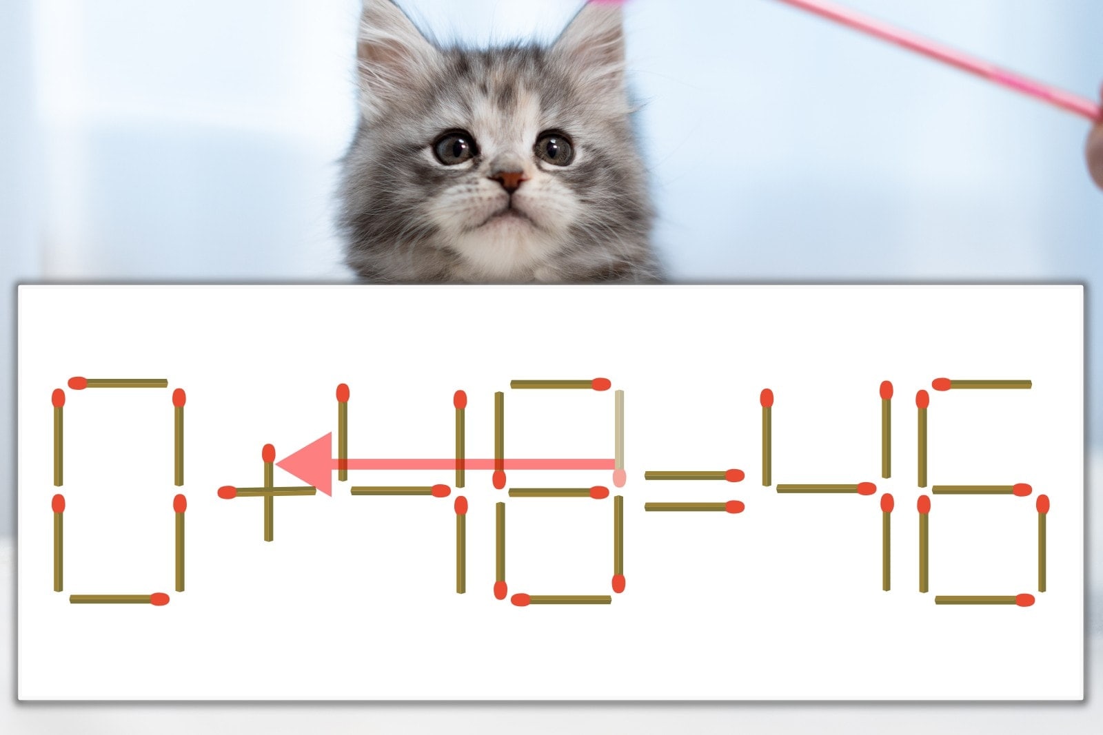 「8」を別の数字に変化させると答えが導き出せます。「8」のマッチ棒を1本移動して、「-」を「+」にしてみましょう。すると、「0+46=46」が成立します。