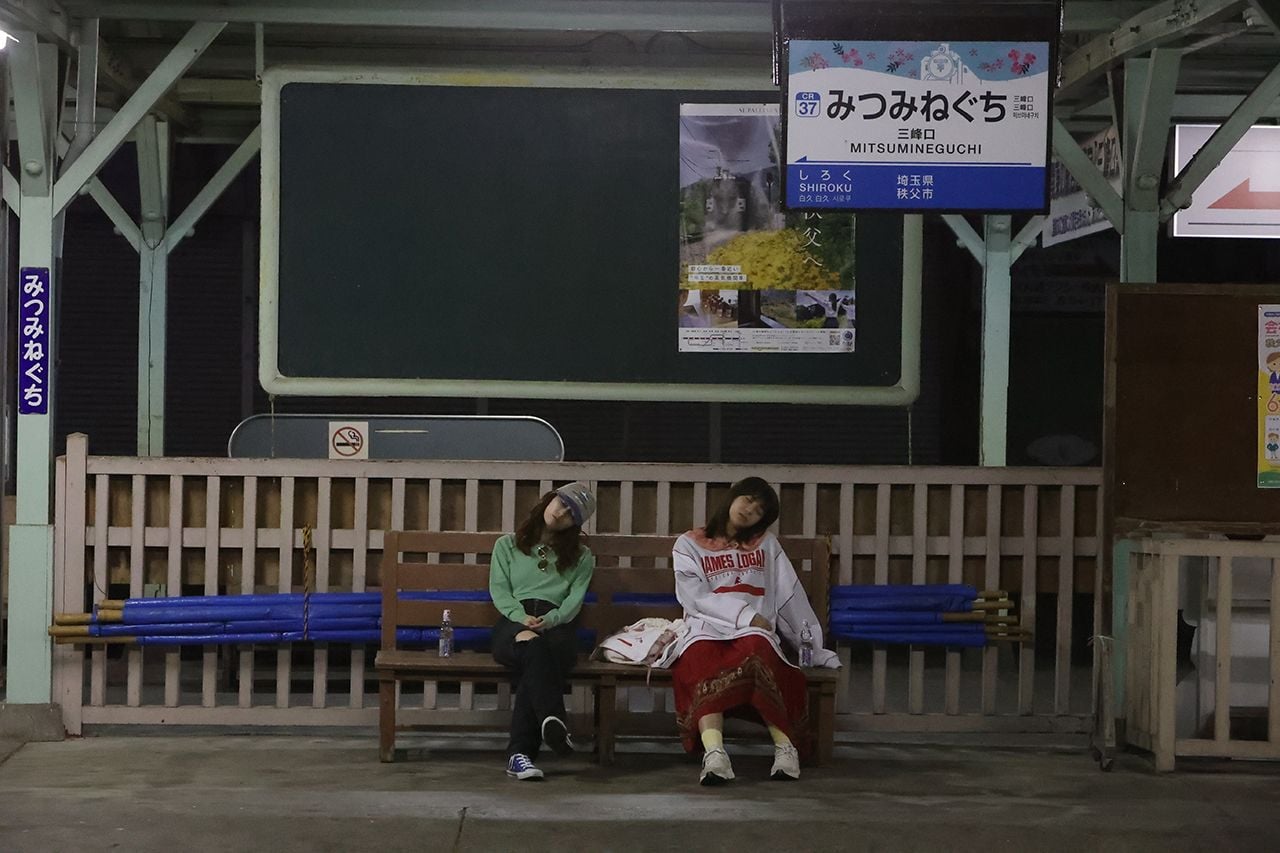 2人の乗った電車はガラガラで、かなりローカルムードが漂ってきた。寝過ごしてしまったことに気付く先輩だったが、後輩の提案で終点まで行くことに。終着駅に着くと、あいにくの雨模様。先輩が短歌を一首詠んで伝言板に書き、駅のベンチに座って2人で乾杯するなど、ゆったりとした時間を過ごす。