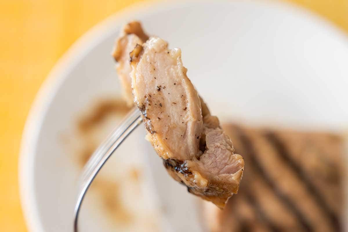軽く力を入れただけでもスッと切れてしまうほど柔らかなチキンは、しっとりとした口当たりでとてもジューシーな味わいです。でも、そんなことよりも、やっぱりにんにくがスゴい! 食べた瞬間にガツンと広がるにんにくの香りとうまみ、そこにコショウのキリッとした風味がプラスされてめっちゃウマい! これはやみつき感のあるおいしさですね。