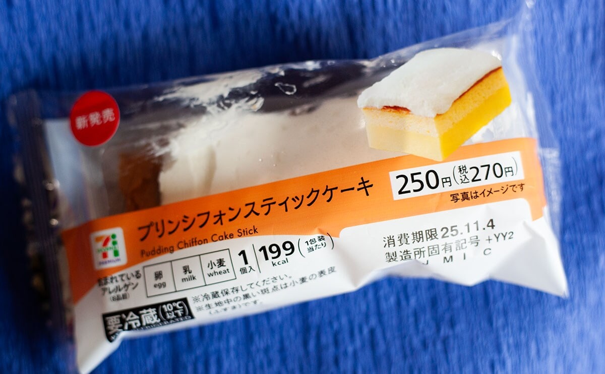 “セブン-イレブンのプリン”というのは、2025年10月28日(火)に発売された新商品「プリンシフォンスティックケーキ」(税込270円)のこと。