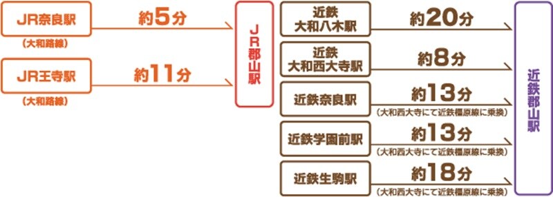 「イオンモール大和郡山」の最寄り駅はJR大和路線(関西本線)郡山駅と、近鉄橿原線郡山駅。両駅は1キロほど離れた場所にありますが、それぞれにイオンモール大和郡山行きの路線バスが出ています。