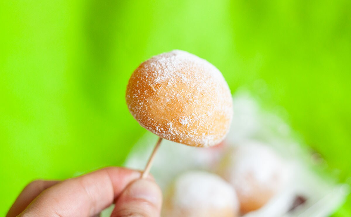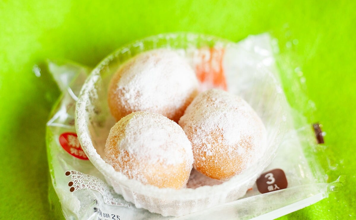 この商品は、もちっとした食感が特長のミニボールドーナツ。生地の中にはカスタードホイップが注入されていて、1袋に3個のドーナツが入っています。