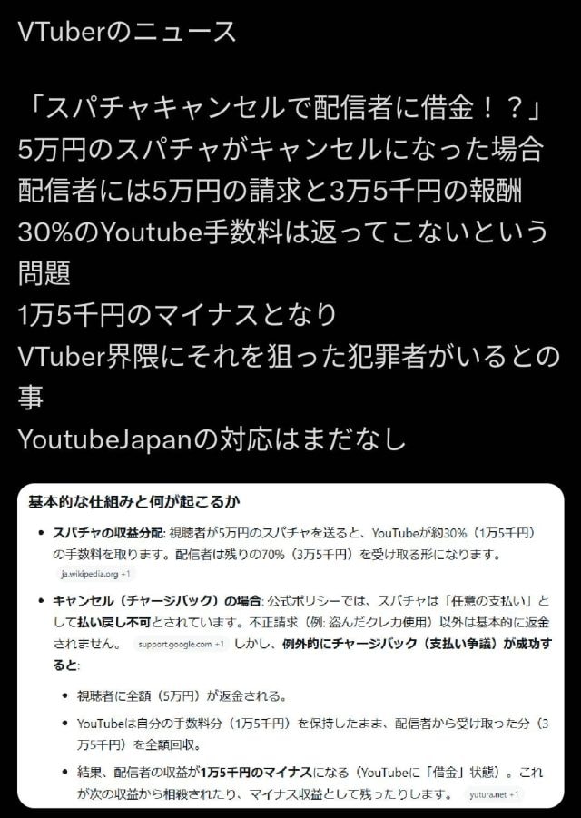 誤情報か YouTubeで海外から大量スパチャ→キャンセルで赤字に? VTuber狙った犯罪との投稿が拡散