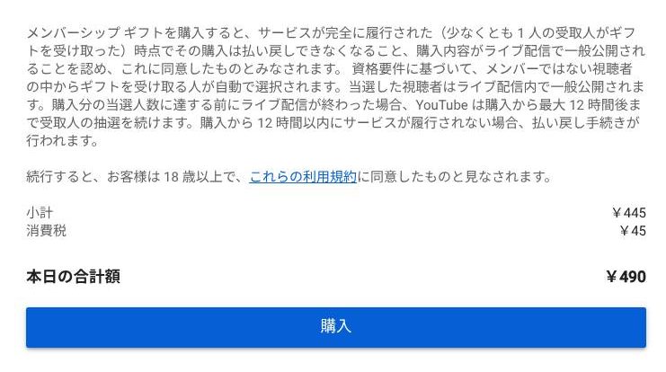 メンギフは生配信やプレミア公開中に送られるものですが、この人物によると、受け取る視聴者が12時間以内に現れずに余ってしまった場合は、払い戻しされるとのこと。実際にユーチュラにてメンギフの購入画面を確認したところ、そのような説明が表示されました。