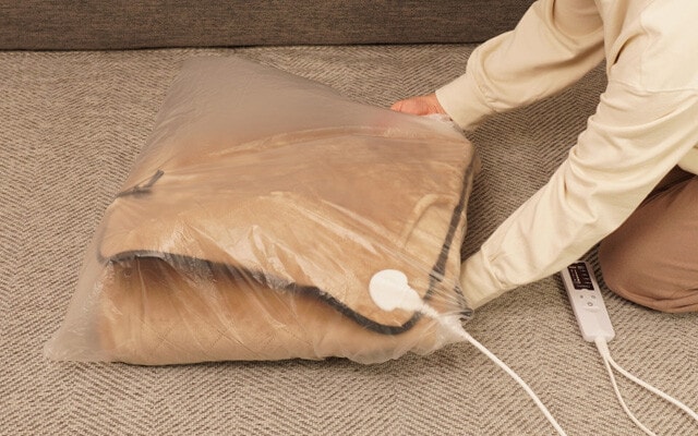 体全体を覆ってヒーターで加熱する毛布、着るこたつ。着たままでも手足はフリーになっているからスマホをチェックしたり、移動したりと自由度が高め。ダニ対策モードが搭載されて、衛生面もアップデートです!
