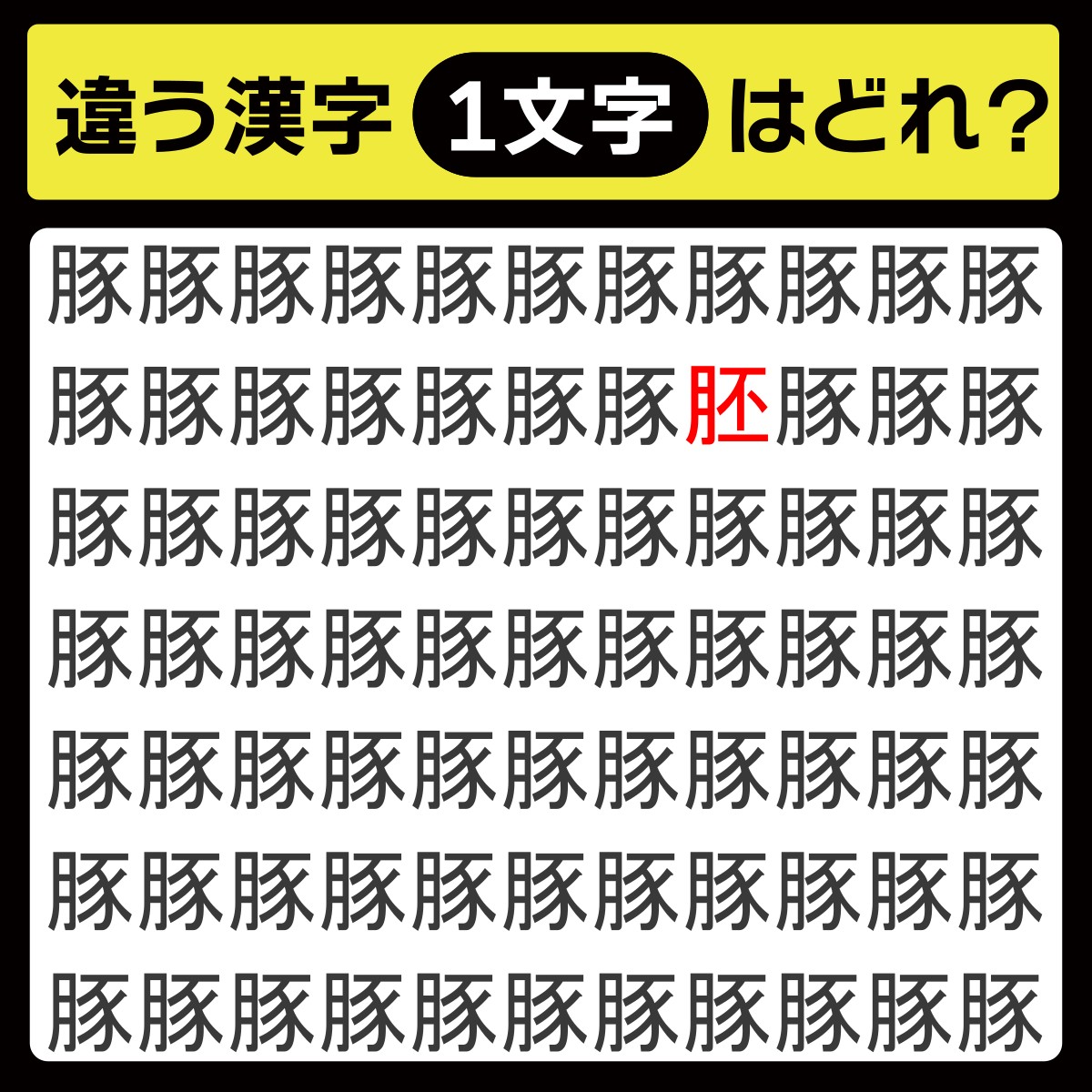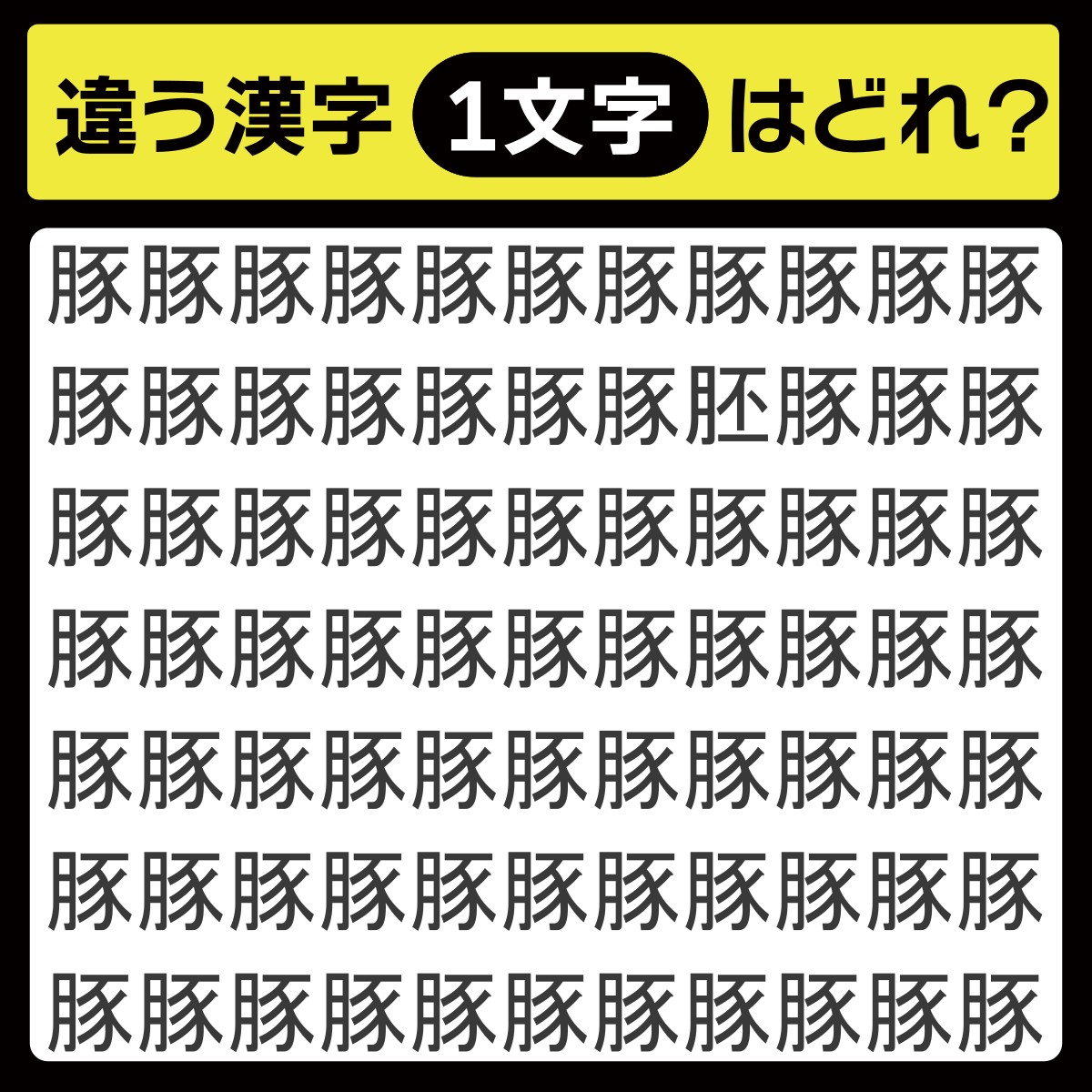 「豚の中に隠れてるのは?」漢字間違い探しで脳トレしよう!【毎日脳トレ】【クイズ】
