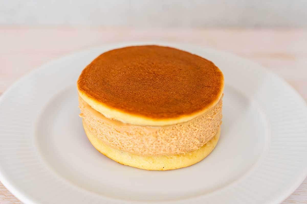 この商品は、ふわもち食感のどら焼生地に、濃厚なミルクティーホイップクリームだけをサンドした、和洋折衷スイーツです。