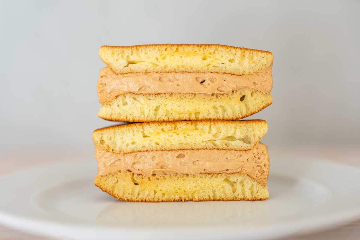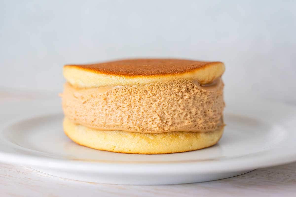 ひとくち頬張っただけで、口の中はホイップクリームでいっぱいに! なめらかでふんわりとしたホイップクリームは、紅茶の芳醇な香りとミルクのコクがあり、リッチなミルクティーの味わいに仕上がっています。ほんのり甘くてふわもち食感のどら焼生地が、ホイップクリームを引き立てていますね。