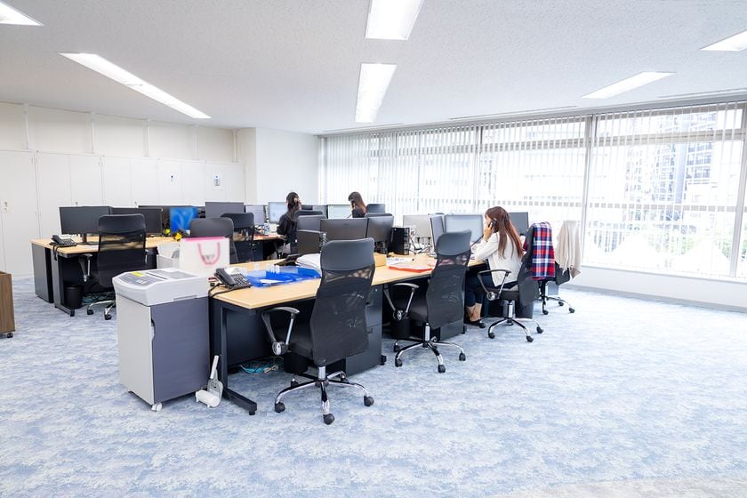 自然光を活かした明るいオフィス環境と、海のさざ波を思わせる床材の採用により、来所者とスタッフの両方が心地よいと感じるデザインになっています。