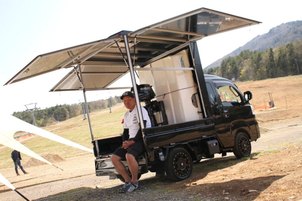 今回の撮影は、軽トラの荷台を自由にカスタマイズしてくれる「Lanps(ランプス)」が主催するキャンプイベント。同社が拠点を構える岐阜県高山市の近く、ひだ舟山スノーリゾートアルコピアで開催され、車中泊仕様、お仕事仕様、災害支援仕様など、さまざまなスタイルの車両が集まりました。