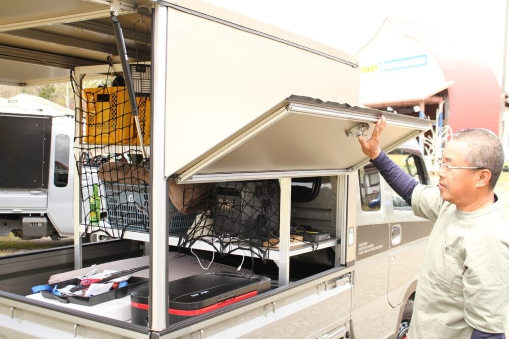 ちなみに他社のカーゴボックスも検討したんです。でも、アオリを開けない仕様のモノが多くて断念しました。アオリを開けないと使い勝手がガラっと変わりますから。Lanpsはオーナーの要望をよくわかってくれていると思います。