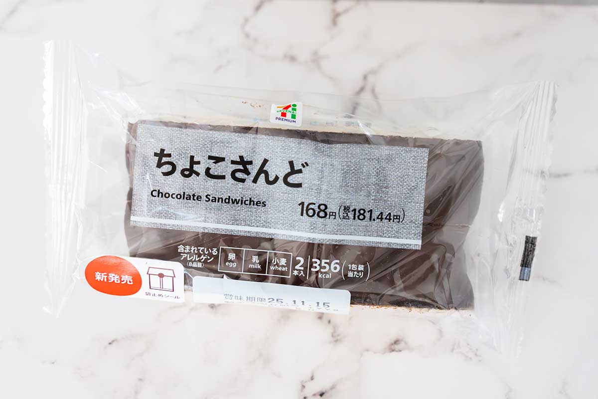 セブン-イレブンは2025年11月11日(火)に、「セブンプレミアム ちょこさんど 2本入」(税込181.44円)を発売しました。