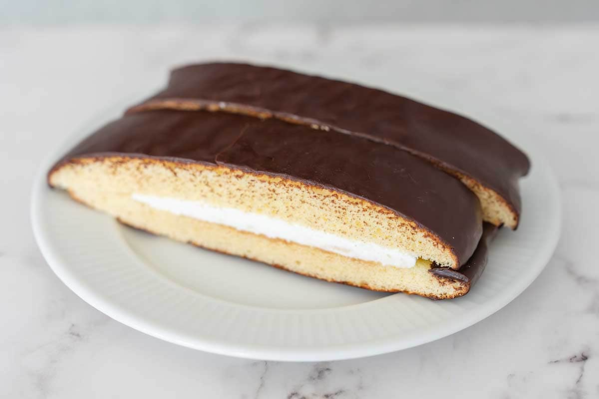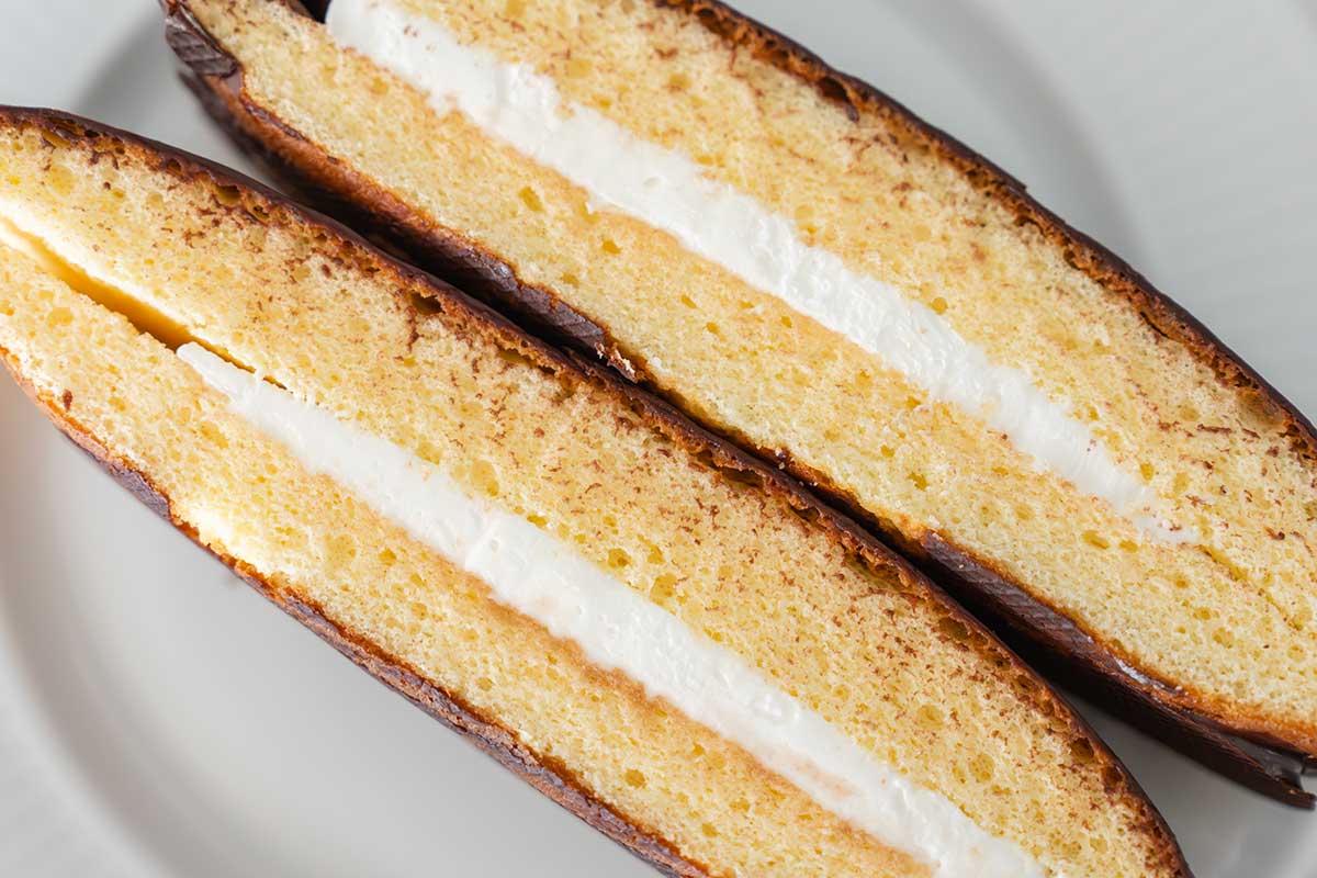 次は断面をチェック。スポンジ生地のあいだに真っ白なバニラクリームがサンドされています。