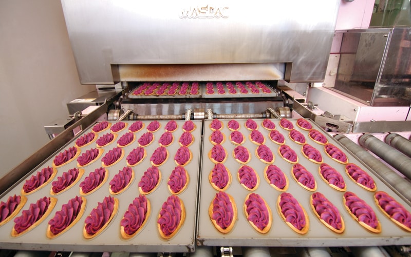3位は沖縄県の「御菓子御殿 読谷本店」です。元祖紅いもタルトの個包装作業や、アーモンドチョコレートサンドの製造工程などを間近で見学できます。(恩納店・国際通り松尾店では、紅いもタルトを製造する「タルトライン」の見学が可能。恩納店では有料・予約制で紅いもタルト手作り体験も実施しています)